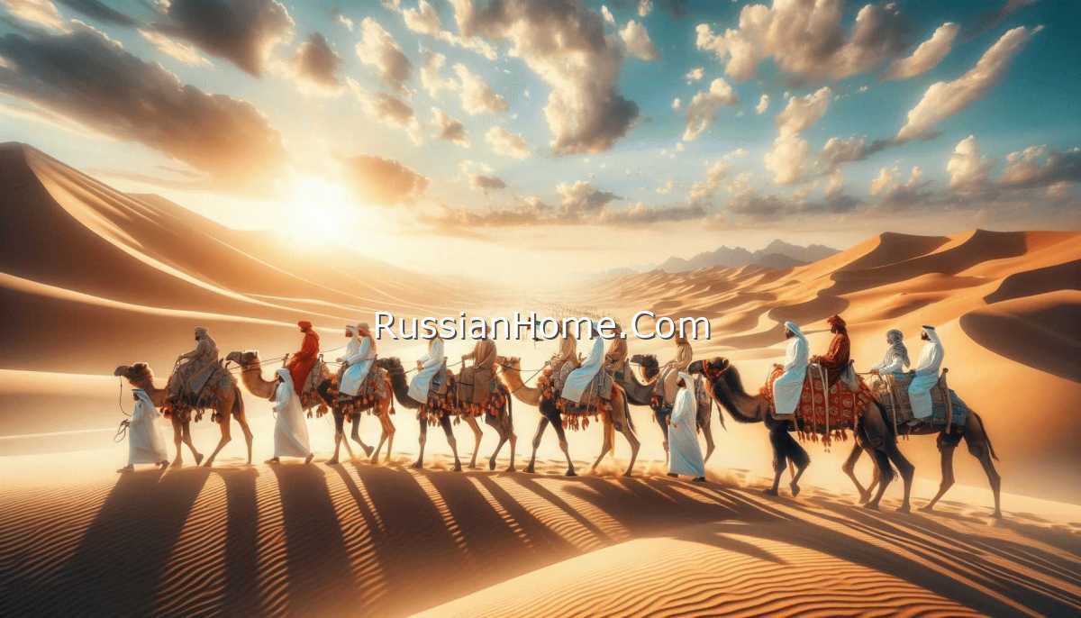 Караван планирует передвигаться в светлое время суток, с короткими привалами для дневного отдыха и остановками на закате. Маршрут пролегает через древние поселения бедуинов, окружённые песками мигрирующих дюн.